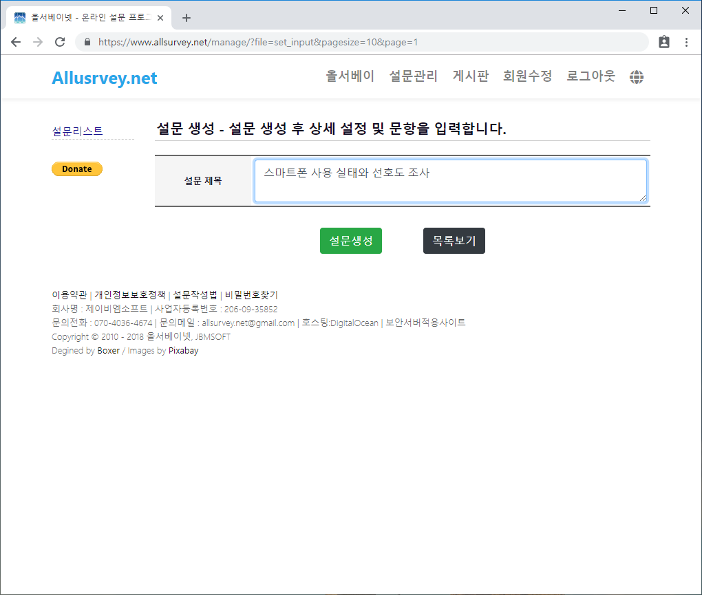 - 설문제목 : 설문의 주제가 되는 제목을 입력합니다.